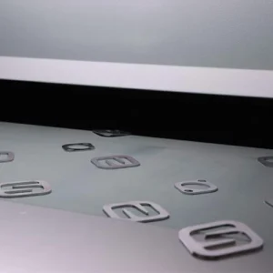 Before and after deburring example of parts cut on punching machine.